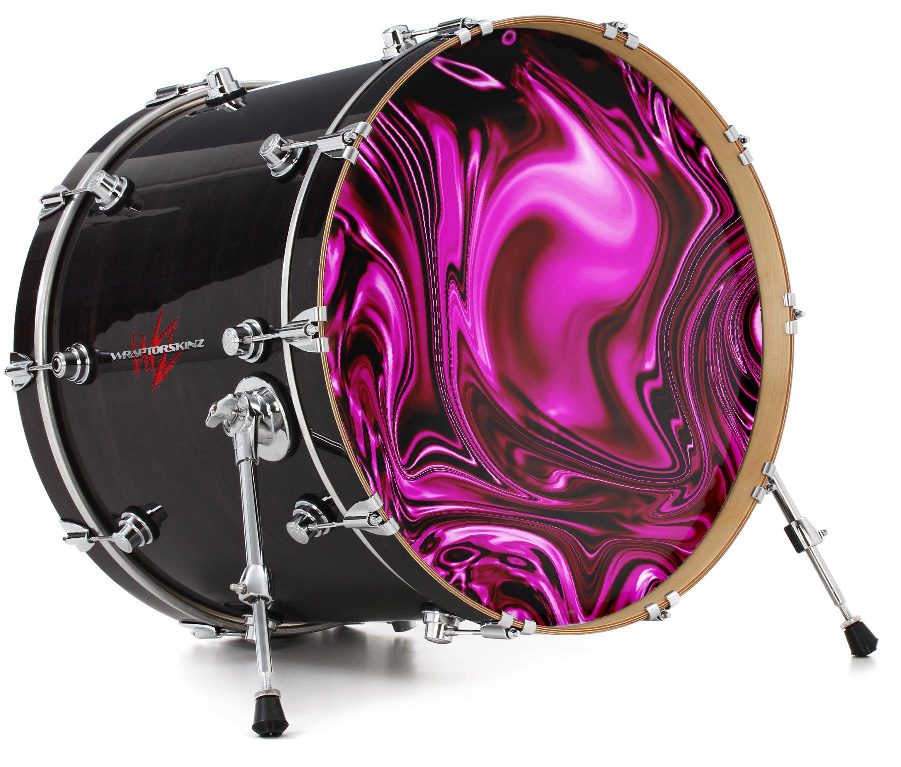 Decal Skin works with most 24" Bass Kick Drum Heads Liquid Metal Chrome Hot Pink Fuchsia - DRUM HEAD NOT INCLUDED