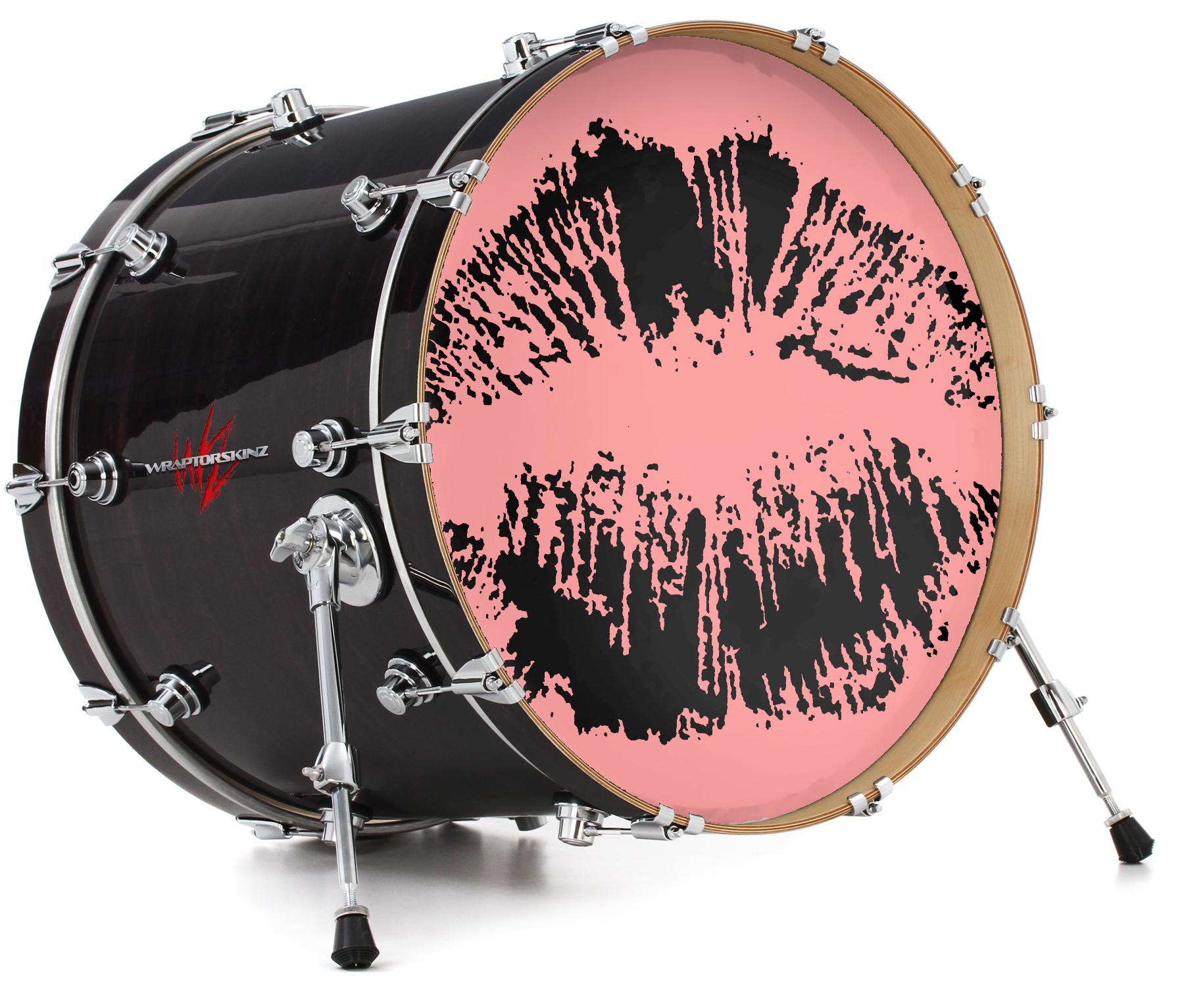 Decal Skin works with most 24" Bass Kick Drum Heads Big Kiss Black on Pink - DRUM HEAD NOT INCLUDED