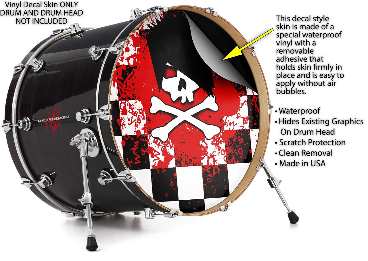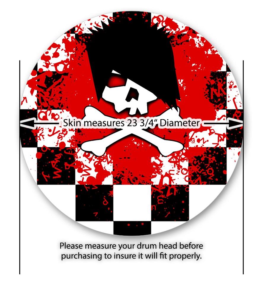 Decal Skin works with most 24" Bass Kick Drum Heads Emo Skull 5 - DRUM HEAD NOT INCLUDED