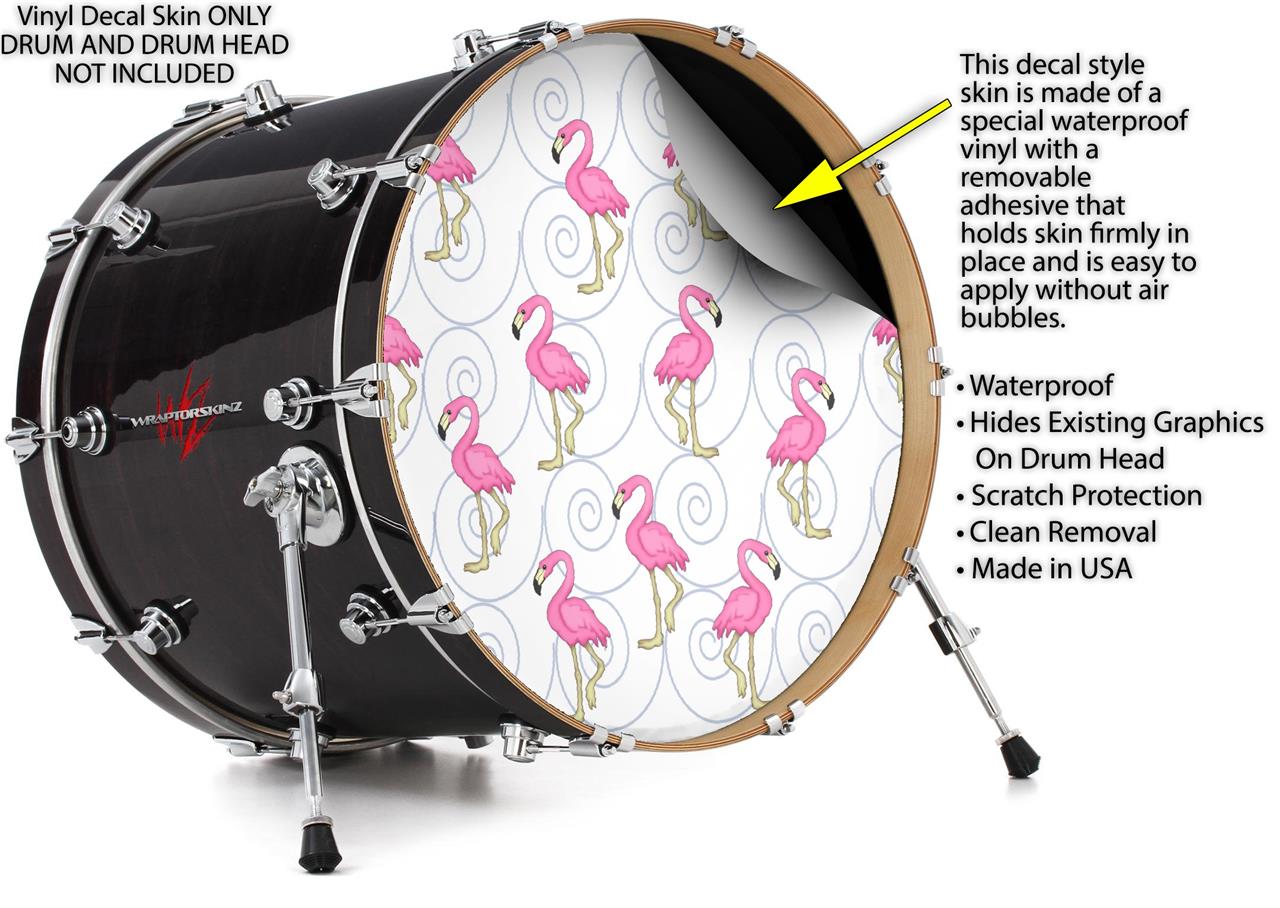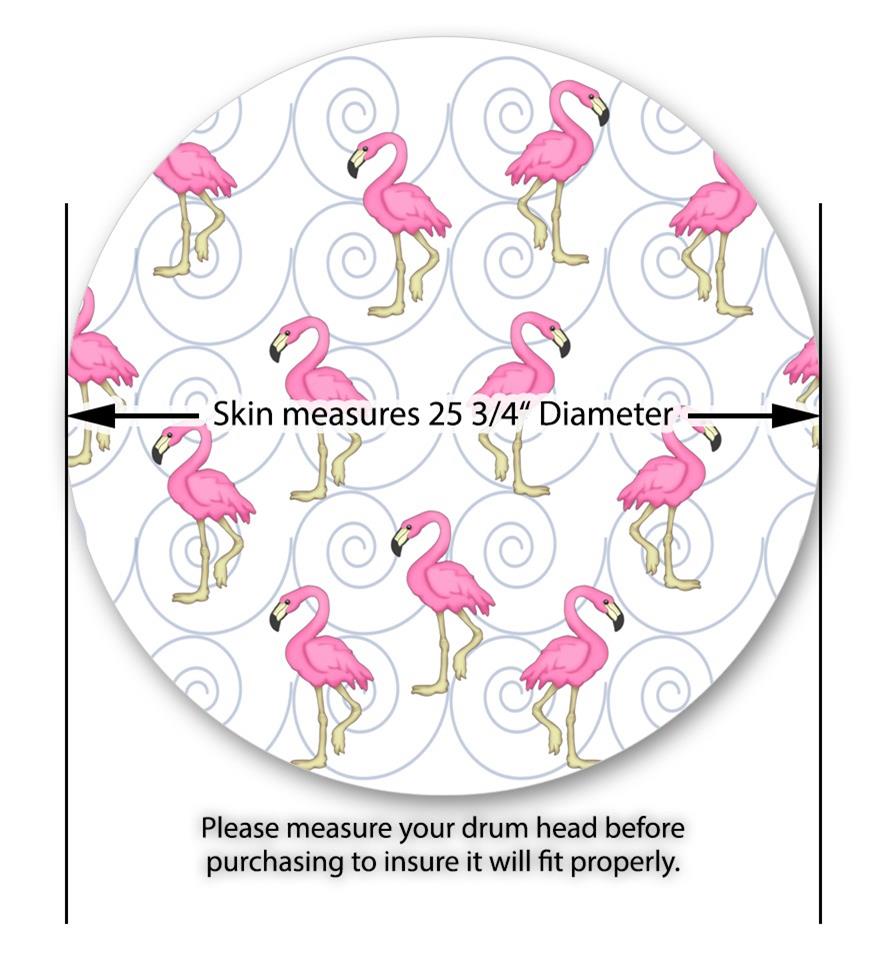 Decal Skin works with most 26" Bass Kick Drum Heads Flamingos on White - DRUM HEAD NOT INCLUDED