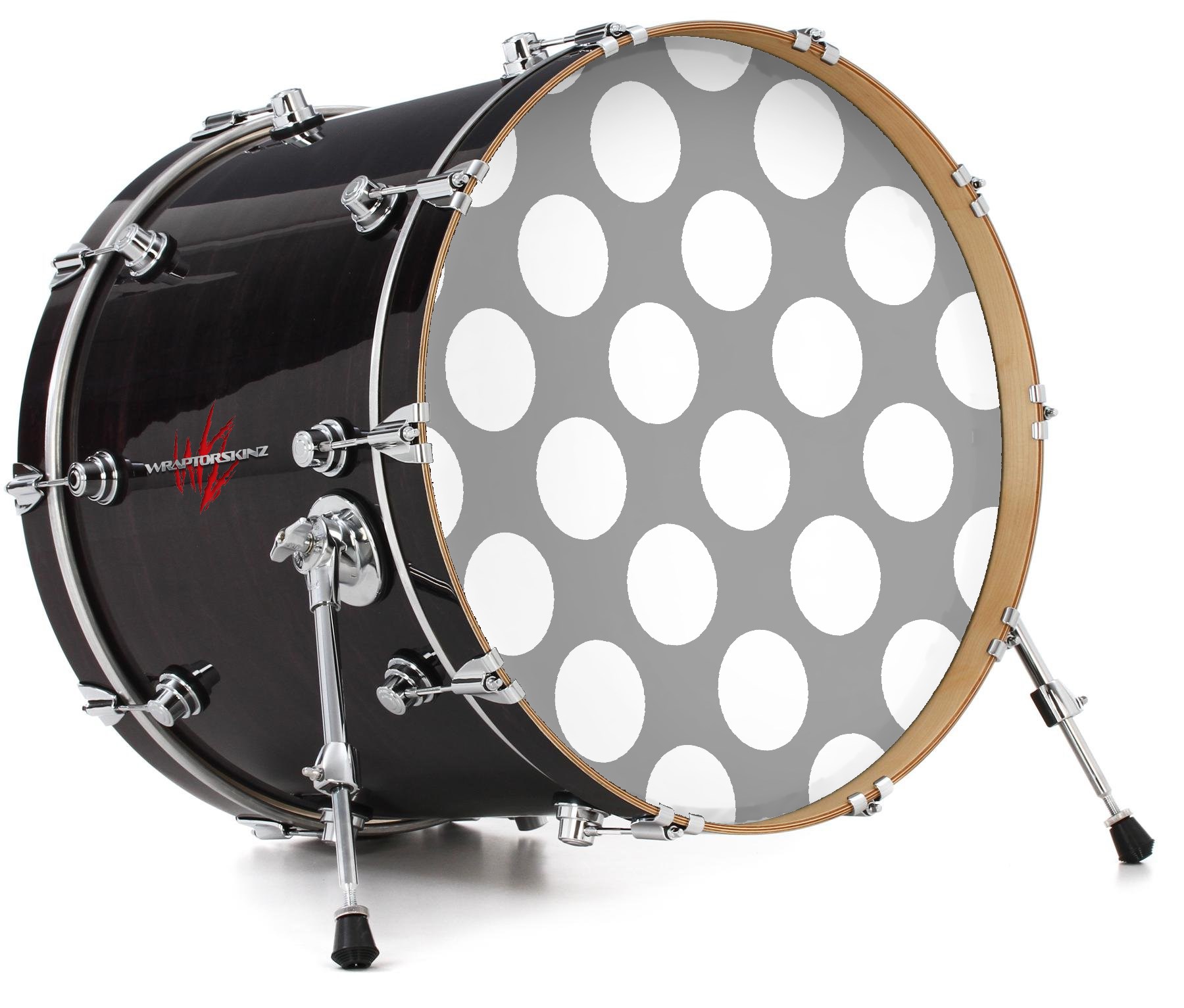 Decal Skin works with most 26" Bass Kick Drum Heads Kearas Polka Dots Whtie On Gray - DRUM HEAD NOT INCLUDED