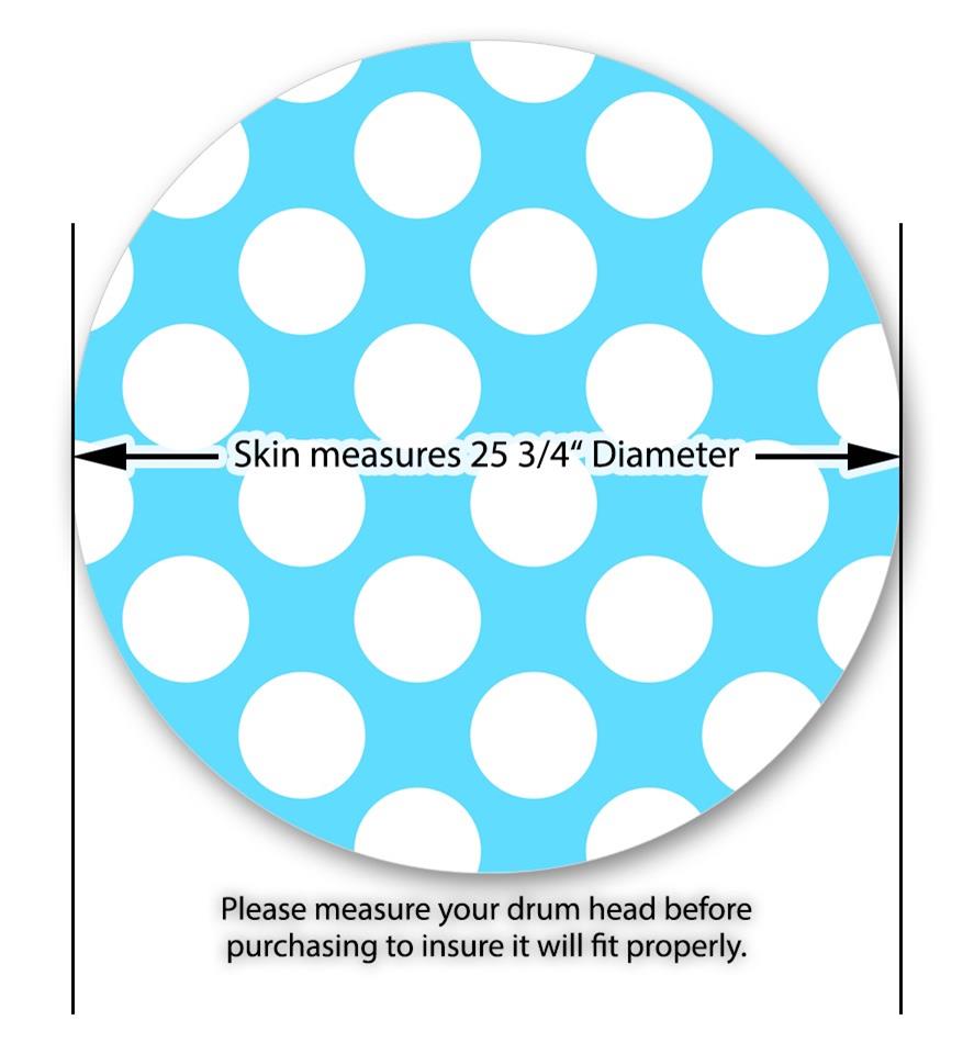 This design also available in other sizes. WraptorSkinz® skin wraps compatible with most kick drum heads. Printed using superb photo quality designs and vibrant colors printed with special fade resistant inks that last even in direct sun for years. WraptorSkinz are a composite three layer commercial grade materials vinyl. The bottom layer is a air release, grey block out removable adhesive that hides existing graphics on the drum head and is easily applied without air bubbles. The middle layer is a flexible vinyl printed with UV protected, fade resistant inks that deliver superb photo quality designs in vibrant colors. Finally, we bond a professional grade laminate over the entire skin adding a glossy protective finish.