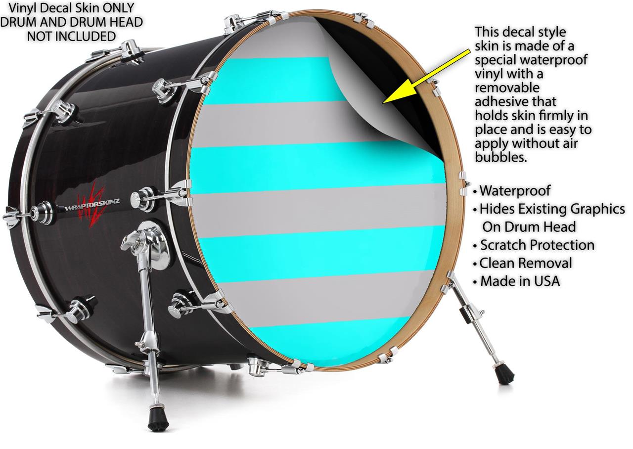 Decal Skin works with most 26" Bass Kick Drum Heads Psycho Stripes Neon Teal and Gray - DRUM HEAD NOT INCLUDED