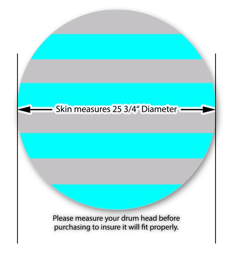 This design also available in other sizes. WraptorSkinz® skin wraps compatible with most kick drum heads. Printed using superb photo quality designs and vibrant colors printed with special fade resistant inks that last even in direct sun for years. WraptorSkinz are a composite three layer commercial grade materials vinyl. The bottom layer is a air release, grey block out removable adhesive that hides existing graphics on the drum head and is easily applied without air bubbles. The middle layer is a flexible vinyl printed with UV protected, fade resistant inks that deliver superb photo quality designs in vibrant colors. Finally, we bond a professional grade laminate over the entire skin adding a glossy protective finish.