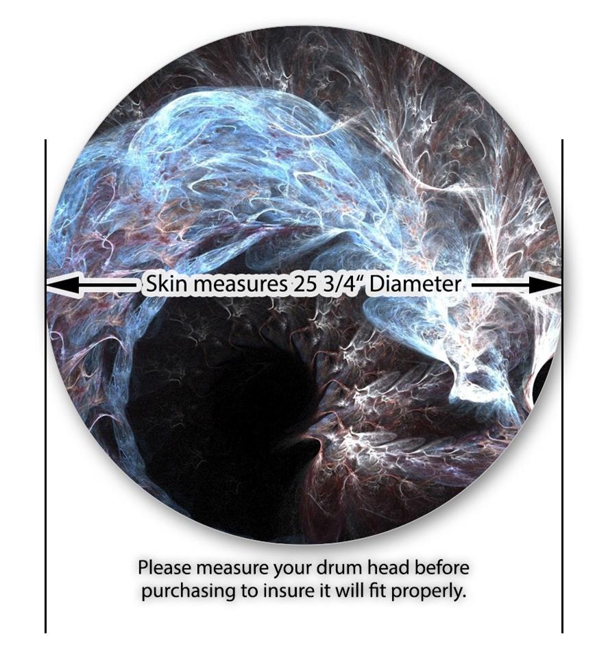 This design also available in other sizes. WraptorSkinz® skin wraps compatible with most kick drum heads. Printed using superb photo quality designs and vibrant colors printed with special fade resistant inks that last even in direct sun for years. WraptorSkinz are a composite three layer commercial grade materials vinyl. The bottom layer is a air release, grey block out removable adhesive that hides existing graphics on the drum head and is easily applied without air bubbles. The middle layer is a flexible vinyl printed with UV protected, fade resistant inks that deliver superb photo quality designs in vibrant colors. Finally, we bond a professional grade laminate over the entire skin adding a glossy protective finish.