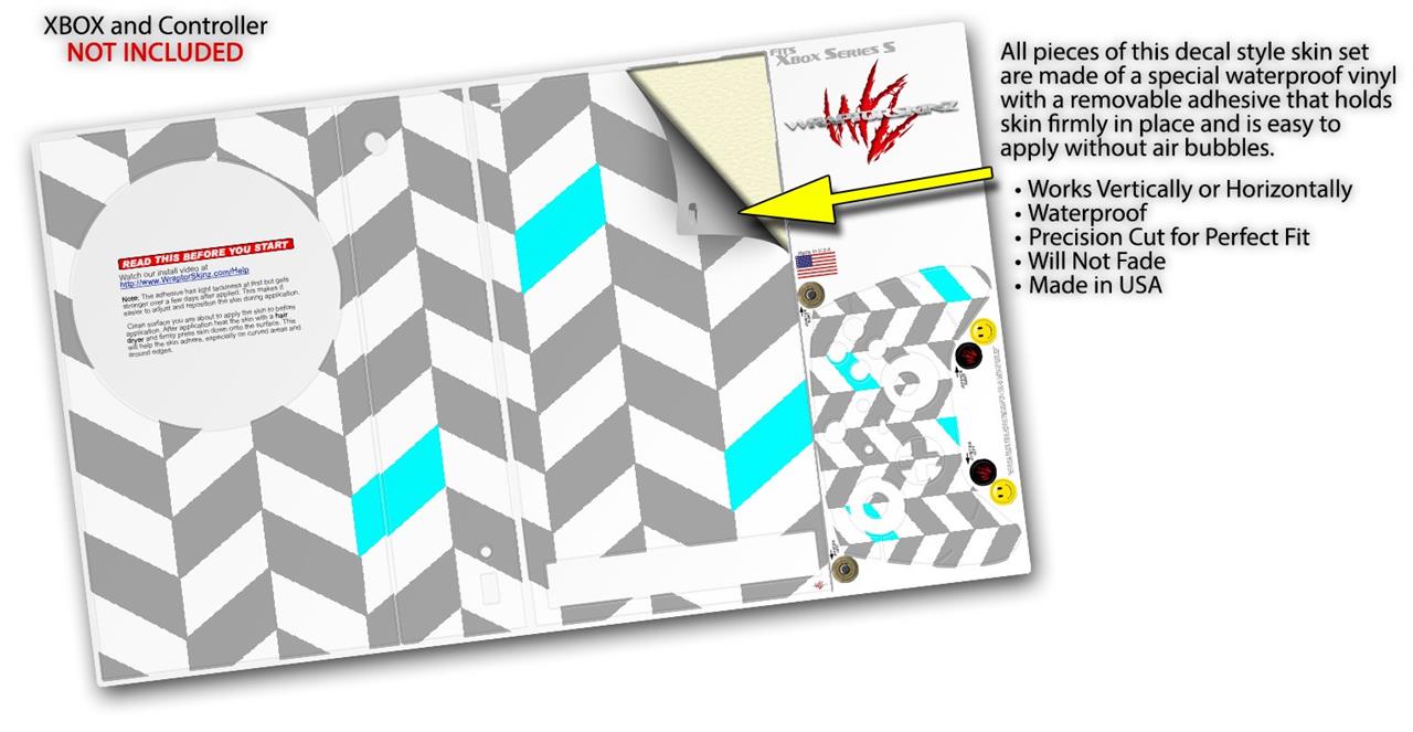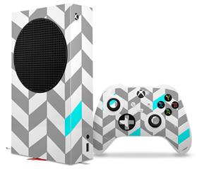 WraptorSkinz Skin Wrap compatible with the 2020 XBOX Series S Console and Controller Chevrons Gray And Aqua (XBOX NOT INCLUDED)