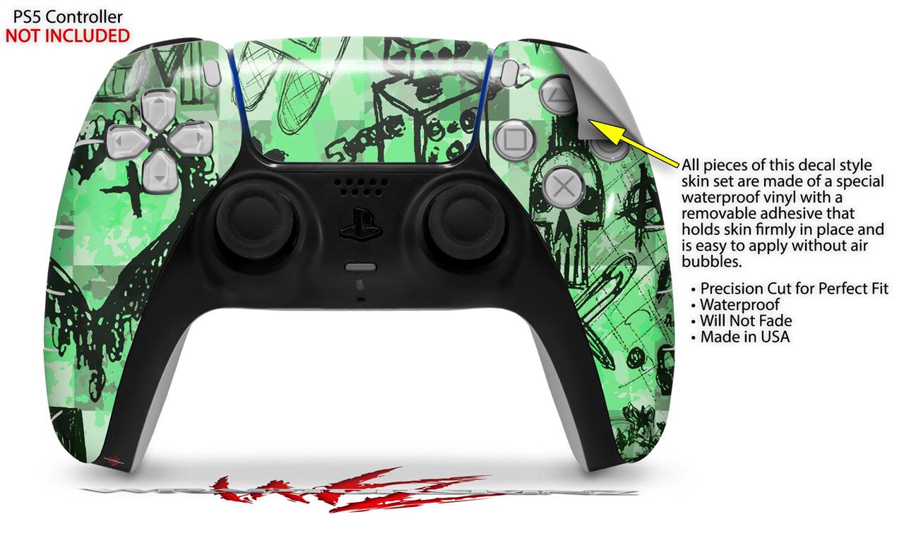 WraptorSkinz Skin Wrap compatible with the Sony PS5 DualSense Controller Scene Kid Sketches Green (CONTROLLER NOT INCLUDED)