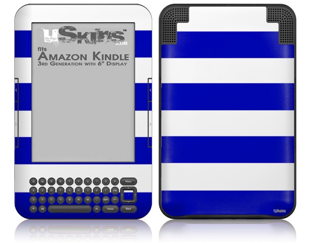 Psycho Stripes Blue and White - Decal Style Skin fits Amazon Kindle 3 Keyboard (with 6 inch display)