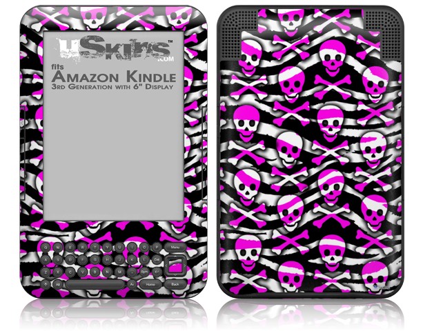 Zebra Pink Skulls - Decal Style Skin fits Amazon Kindle 3 Keyboard (with 6 inch display)
