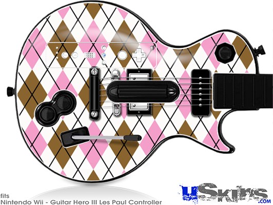 Guitar Hero III Wii Les Paul Skin - Argyle Pink and Brown