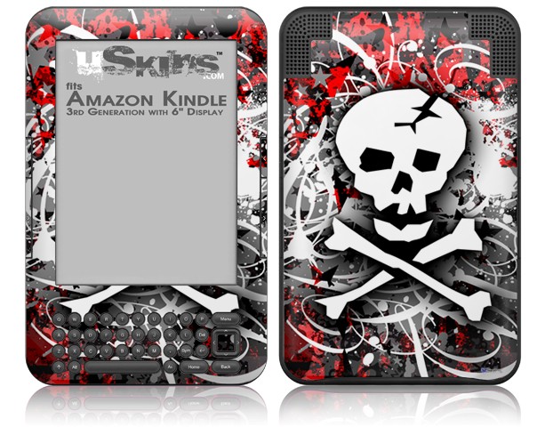 Skull Splatter - Decal Style Skin fits Amazon Kindle 3 Keyboard (with 6 inch display)