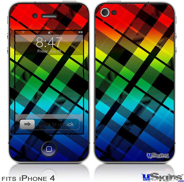 iPhone 4 Decal Style Vinyl Skin - Rainbow Plaid (DOES NOT fit newer iPhone 4S)