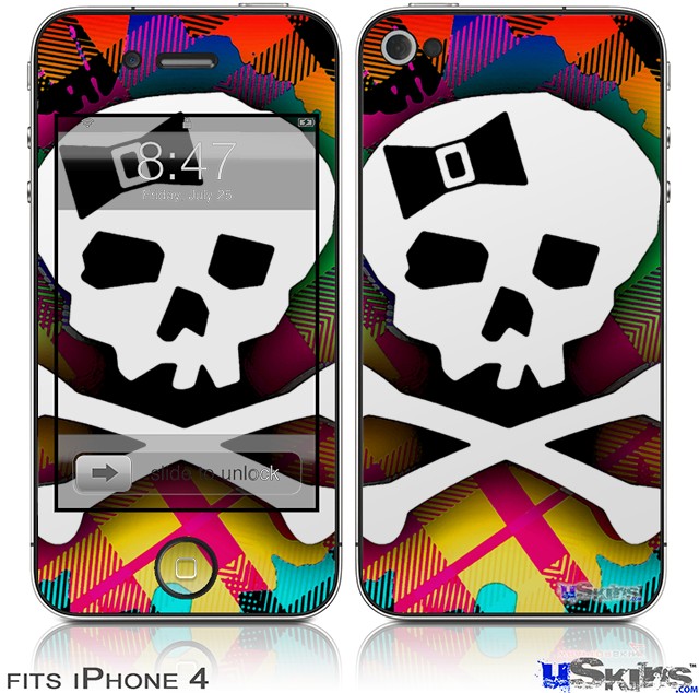 iPhone 4 Decal Style Vinyl Skin - Rainbow Plaid Skull (DOES NOT fit newer iPhone 4S)