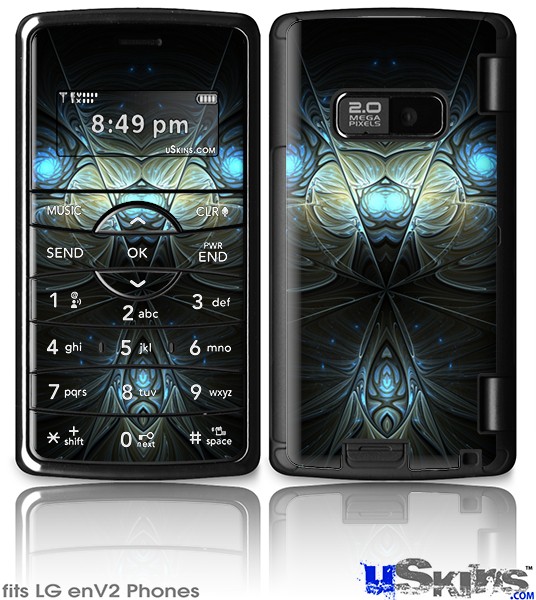 Skin covers front and back of LG enV2 cell phone.