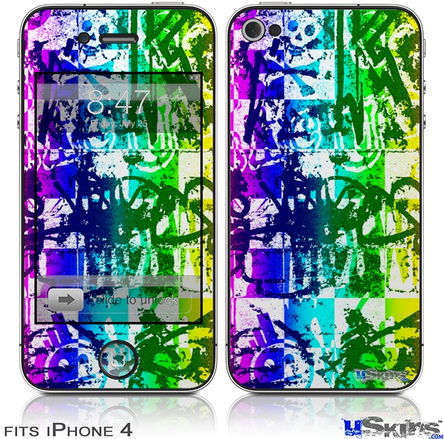 iPhone 4 Decal Style Vinyl Skin - Rainbow Graffiti (DOES NOT fit newer iPhone 4S)