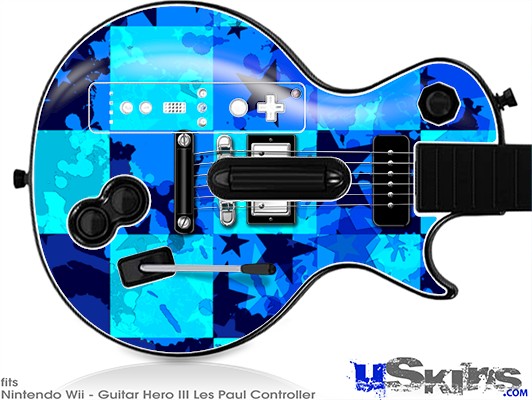 Guitar Hero III Wii Les Paul Skin - Blue Star Checkers