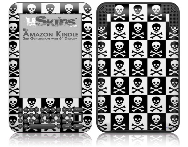 Skull Checkerboard - Decal Style Skin fits Amazon Kindle 3 Keyboard (with 6 inch display)