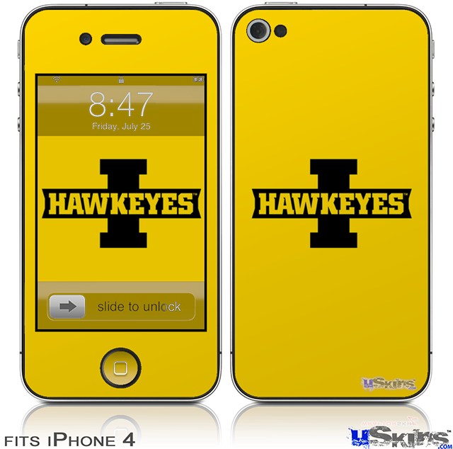 iPhone 4 Decal Style Vinyl Skin - Iowa Hawkeyes 02 Black on Gold (DOES NOT fit newer iPhone 4S)