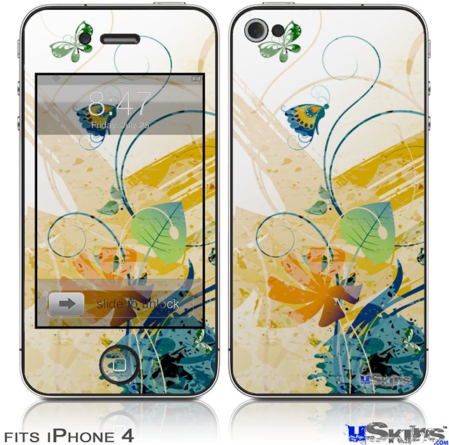 iPhone 4 Decal Style Vinyl Skin - Water Butterflies (DOES NOT fit newer iPhone 4S)