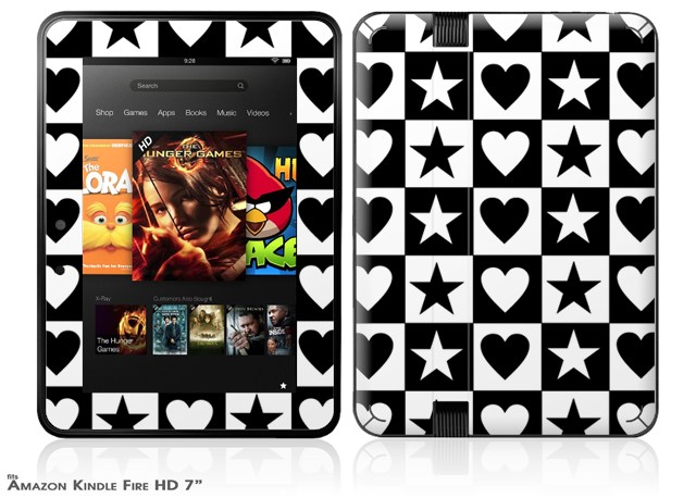 Hearts And Stars Black and White Decal Style Skin fits 2012 Amazon Kindle Fire HD 7 inch