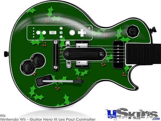 Guitar Hero III Wii Les Paul Skin - Holly Leaves on Green