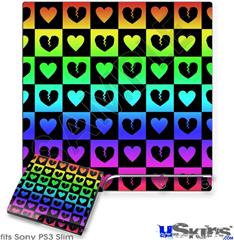 Decal Skin compatible with Sony PS3 Slim Love Heart Checkers Rainbow