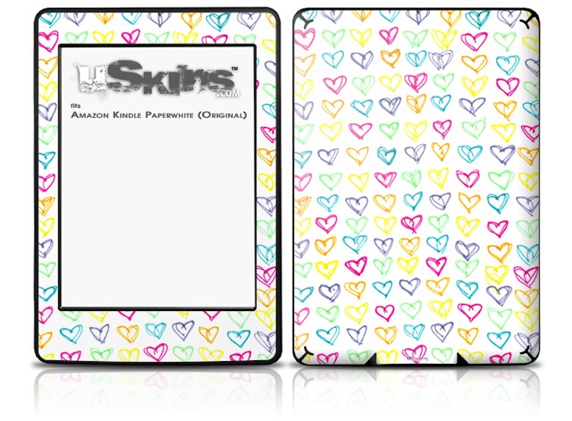 Kearas Hearts White - Decal Style Skin fits Amazon Kindle Paperwhite (Original)