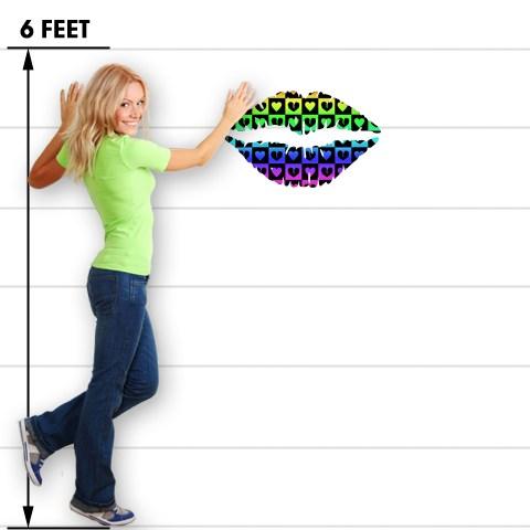 Love Heart Checkers Rainbow - Kissing Lips Fabric Wall Skin Decal measures 24x15 inches