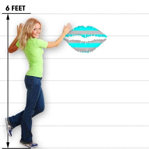 Psycho Stripes Neon Teal and Gray - Kissing Lips Fabric Wall Skin Decal measures 24x15 inches