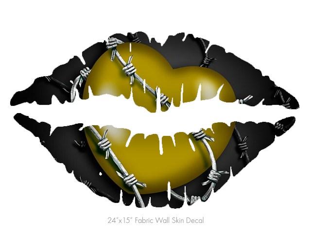 Barbwire Heart Yellow - Kissing Lips Fabric Wall Skin Decal measures 24x15 inches