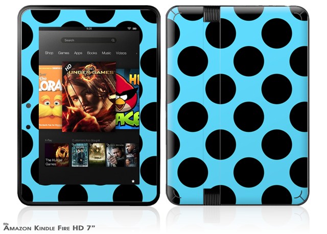 Kearas Polka Dots Black And Blue Decal Style Skin fits 2012 Amazon Kindle Fire HD 7 inch