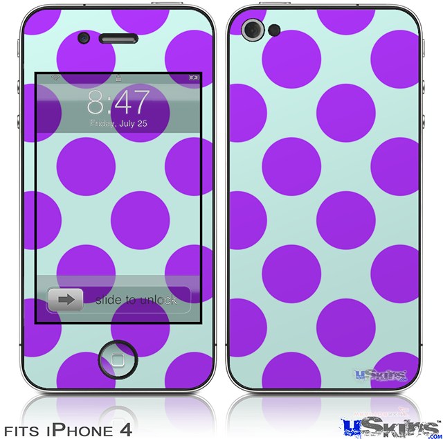 iPhone 4 Decal Style Vinyl Skin - Kearas Polka Dots Purple And Blue (DOES NOT fit newer iPhone 4S)