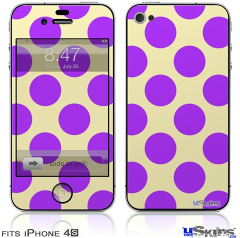 iPhone 4S Decal Style Vinyl Skin - Kearas Polka Dots Purple On Cream