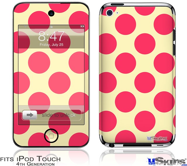 iPod Touch 4G Decal Style Vinyl Skin - Kearas Polka Dots Pink On Cream