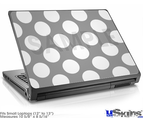 Laptop Skin (Small) - Kearas Polka Dots Whtie On Gray