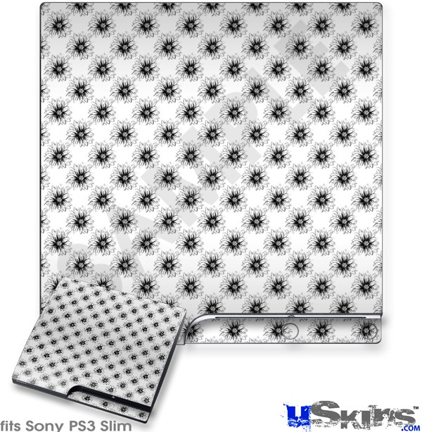 Decal Skin compatible with Sony PS3 Slim Kearas Daisies Black on White