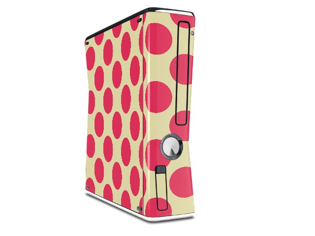 Kearas Polka Dots Pink On Cream Decal Style Skin for XBOX 360 Slim Vertical