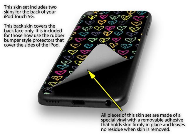 Kearas Hearts Black Decal Style Vinyl Skin - fits Apple iPod Touch 5G (IPOD NOT INCLUDED)
