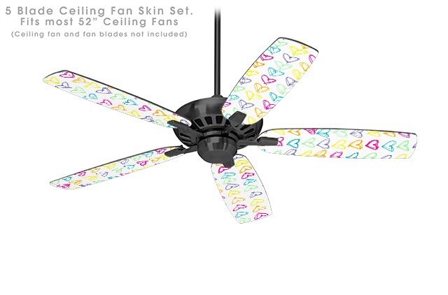 Kearas Hearts White - Ceiling Fan Skin Kit fits most 52 inch fans (FAN and BLADES SOLD SEPARATELY)