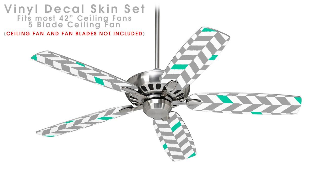 Chevrons Gray And Turquoise - Ceiling Fan Skin Kit fits most 42 inch fans (FAN and BLADES SOLD SEPARATELY)