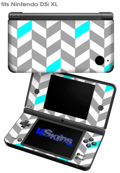Chevrons Gray And Aqua - Decal Style Skin fits Nintendo DSi XL (DSi SOLD SEPARATELY)
