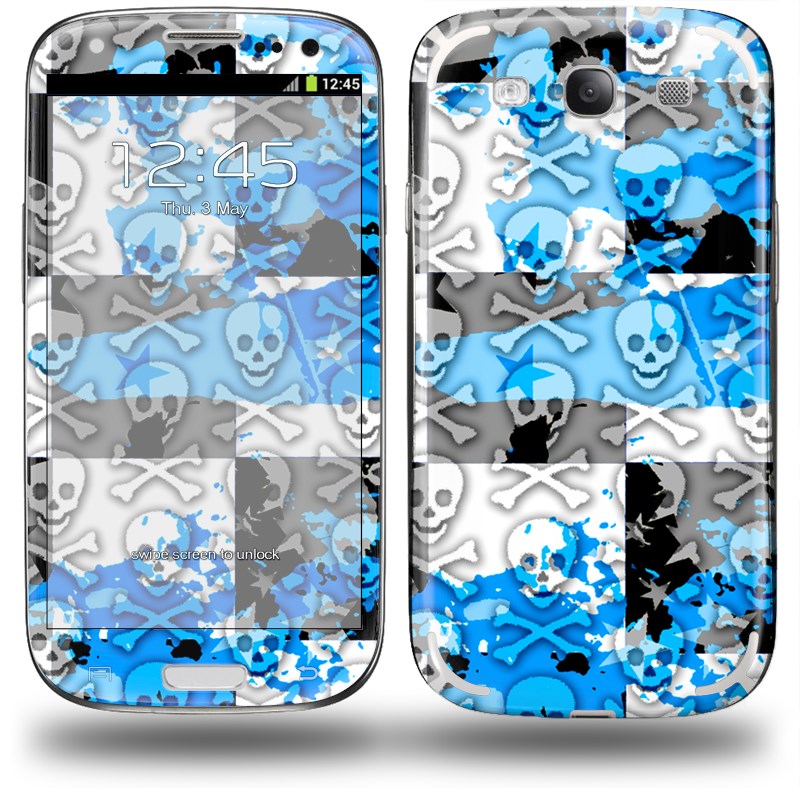 Checker Skull Splatter Blue - Decal Style Skin (fits Samsung Galaxy S III S3)