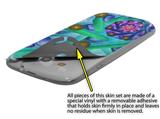 uSkins™ are self adhering vinyl skins that help prevent scratches and look great doing it. Unlike bulky silicon, plastic or metal cases and faceplates, uSkins are designed to be thin and very tough. uSkins are a composite of two layers of commercial grade materials. The bottom layer is a soft, flexible vinyl with a special removable adhesive that is easily positioned, applied without air bubbles, and effortlessly removed without leaving a sticky residue. Next we print the bottom layer with UV protected, fade resistant inks that deliver superb photo quality designs in vibrant colors. Finally we bond a professional grade laminate over the entire skin adding a glossy protective finish.