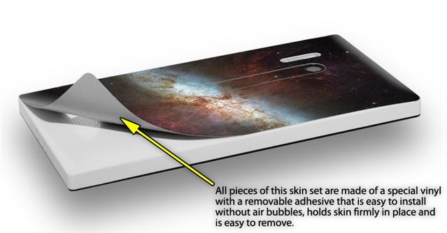 uSkins™ are self adhering vinyl skins that help prevent scratches and look great doing it. Unlike bulky silicon, plastic or metal cases and faceplates, uSkins are designed to be thin and very tough. uSkins are a composite of two layers of commercial grade materials. The bottom layer is a soft, flexible vinyl with a special removable adhesive that is easily positioned, applied without air bubbles, and effortlessly removed without leaving a sticky residue. Next we print the bottom layer with UV protected, fade resistant inks that deliver superb photo quality designs in vibrant colors. Finally we bond a professional grade laminate over the entire skin adding a glossy protective finish.