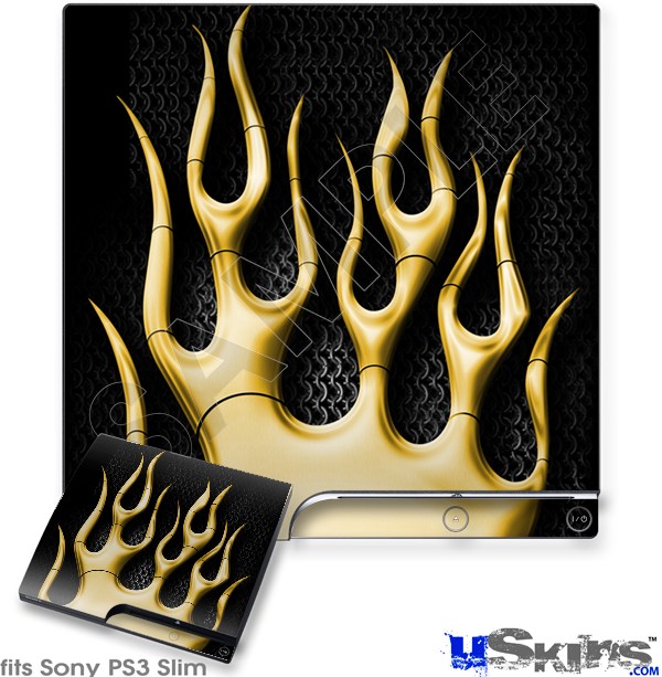 Decal Skin compatible with Sony PS3 Slim Metal Flames Yellow