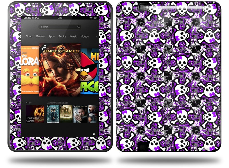 Splatter Girly Skull Purple Decal Style Skin fits Amazon Kindle Fire HD 8.9 inch