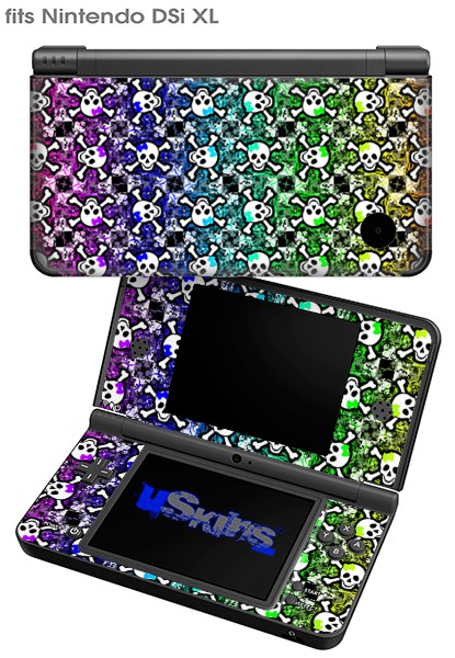 Splatter Girly Skull Rainbow - Decal Style Skin fits Nintendo DSi XL (DSi SOLD SEPARATELY)