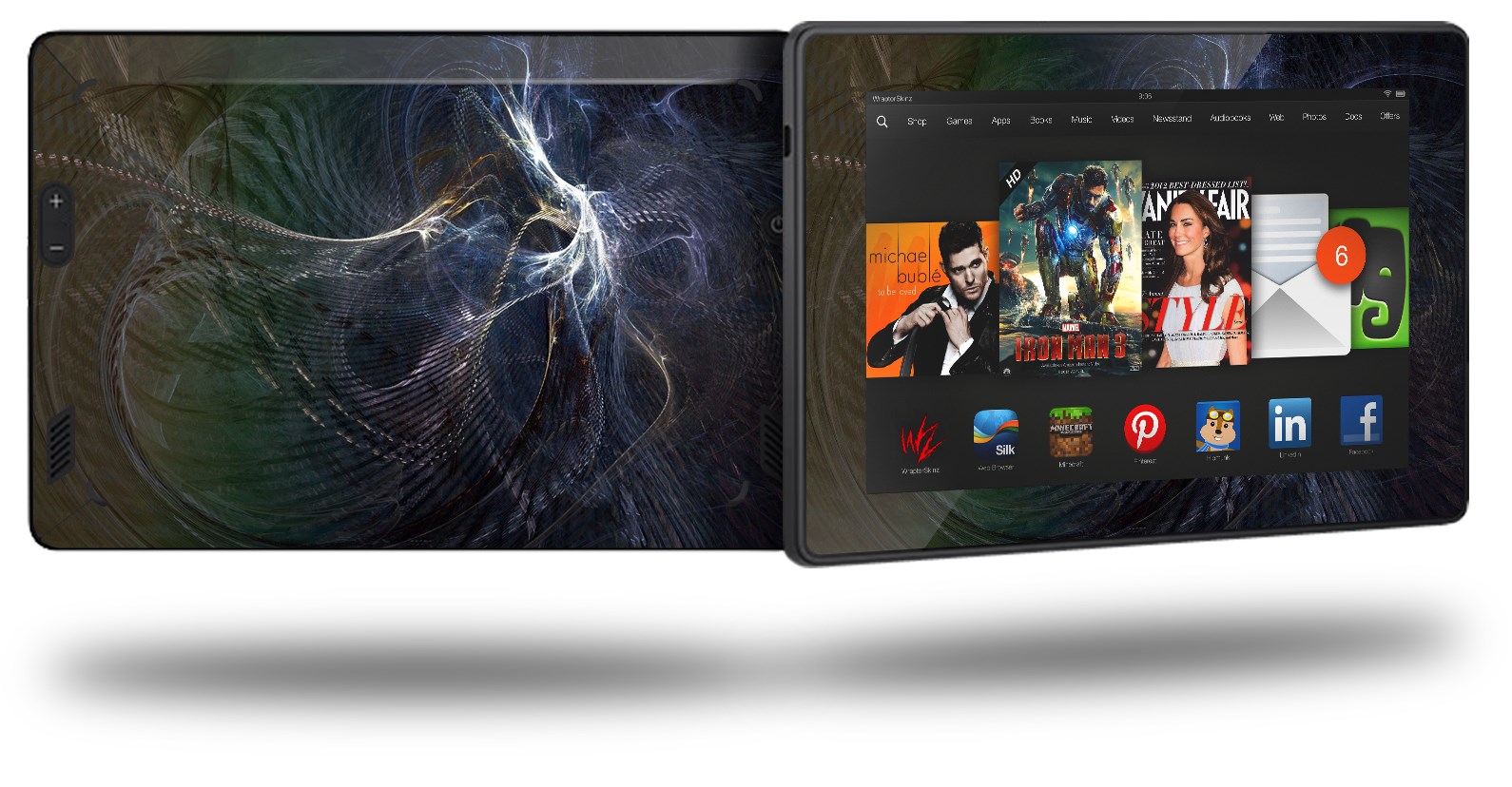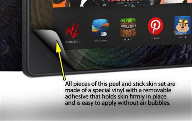• Skin covers front and back of the Kindle.