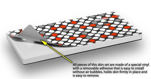 uSkins™ are self adhering vinyl skins that help prevent scratches and look great doing it. Unlike bulky silicon, plastic or metal cases and faceplates, uSkins are designed to be thin and very tough. uSkins are a composite of two layers of commercial grade materials. The bottom layer is a soft, flexible vinyl with a special removable adhesive that is easily positioned, applied without air bubbles, and effortlessly removed without leaving a sticky residue. Next we print the bottom layer with UV protected, fade resistant inks that deliver superb photo quality designs in vibrant colors. Finally we bond a professional grade laminate over the entire skin adding a glossy protective finish.