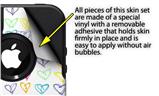 uSkins™ are self adhering vinyl decal style skins and are a great way to add a new look to your protective case. uSkins are a composite of two layers of commercial grade materials. The bottom layer is a soft, flexible vinyl with a special removable adhesive that is easily positioned, applied without air bubbles. Next we print the bottom layer with UV protected, fade resistant inks that deliver superb photo quality designs in vibrant colors. Finally we bond a professional grade laminate over the entire skin adding a glossy protective finish.